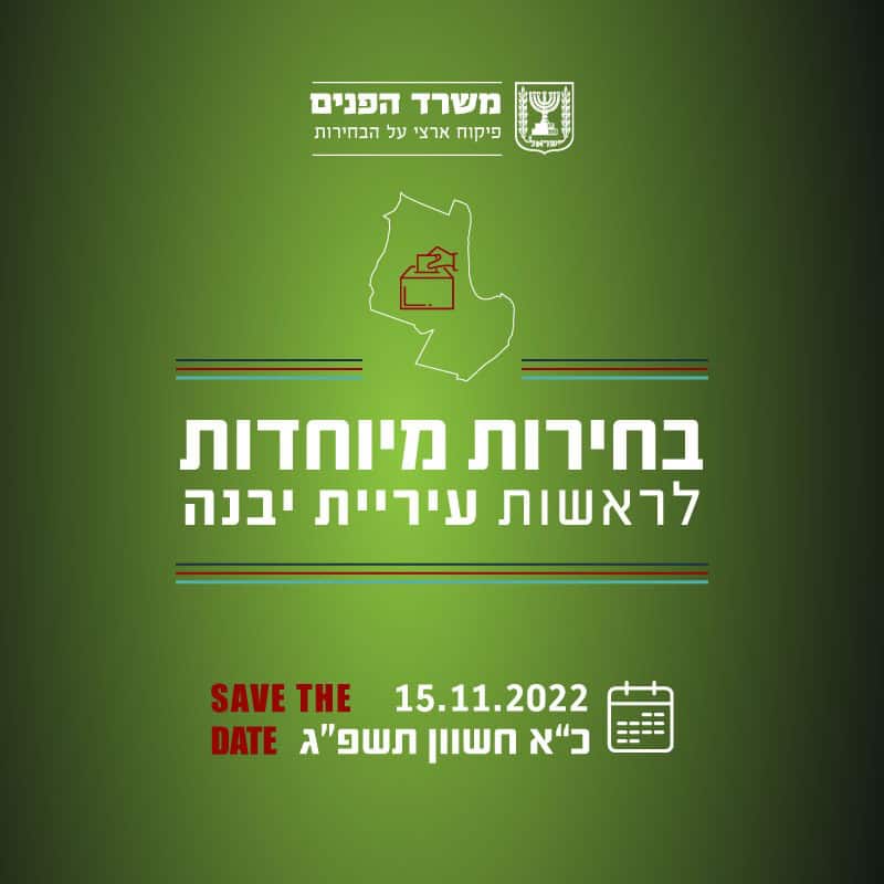 בהתאם לחוק, ביום שלישי הקרוב, כ"א בחשוון תשפ"ג 15 בנובמבר 2022, יתקיימו בחירות מיוחדות לראשות עיריית יבנה, זאת בשל פטירתו של ראש העיר מר צבי גוב ארי ז"ל.