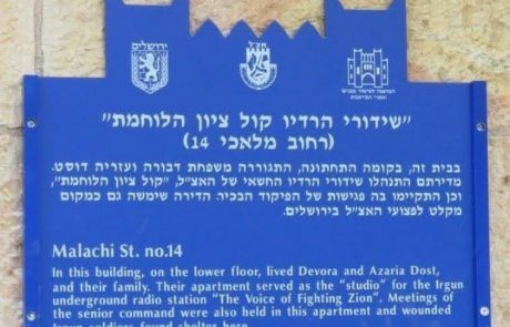 במהלך הטקס נחנך שלט ברחוב מלאכי 14 בירושלים בבית הזוג דוסט בו התקיימו בזמן ימי המחתרות שידורי הרדיו החשאי של